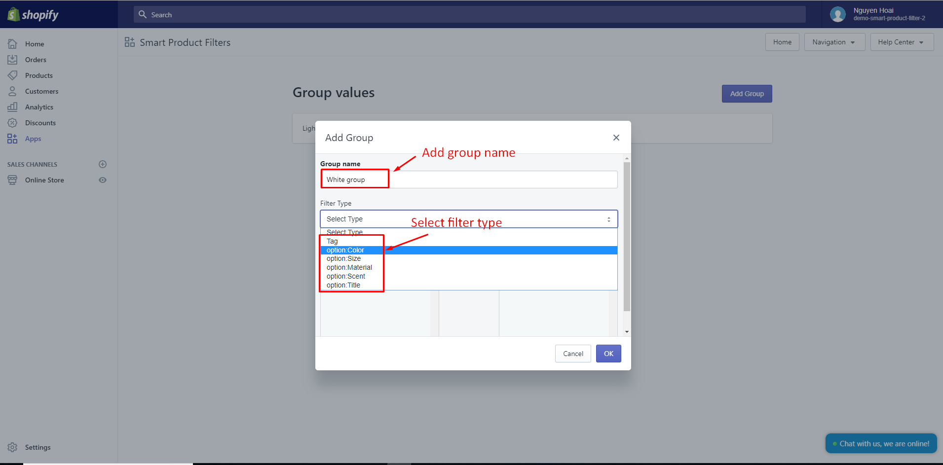 Note: The group value displays in the filter in the front end only when products of your collections include all values of this group.